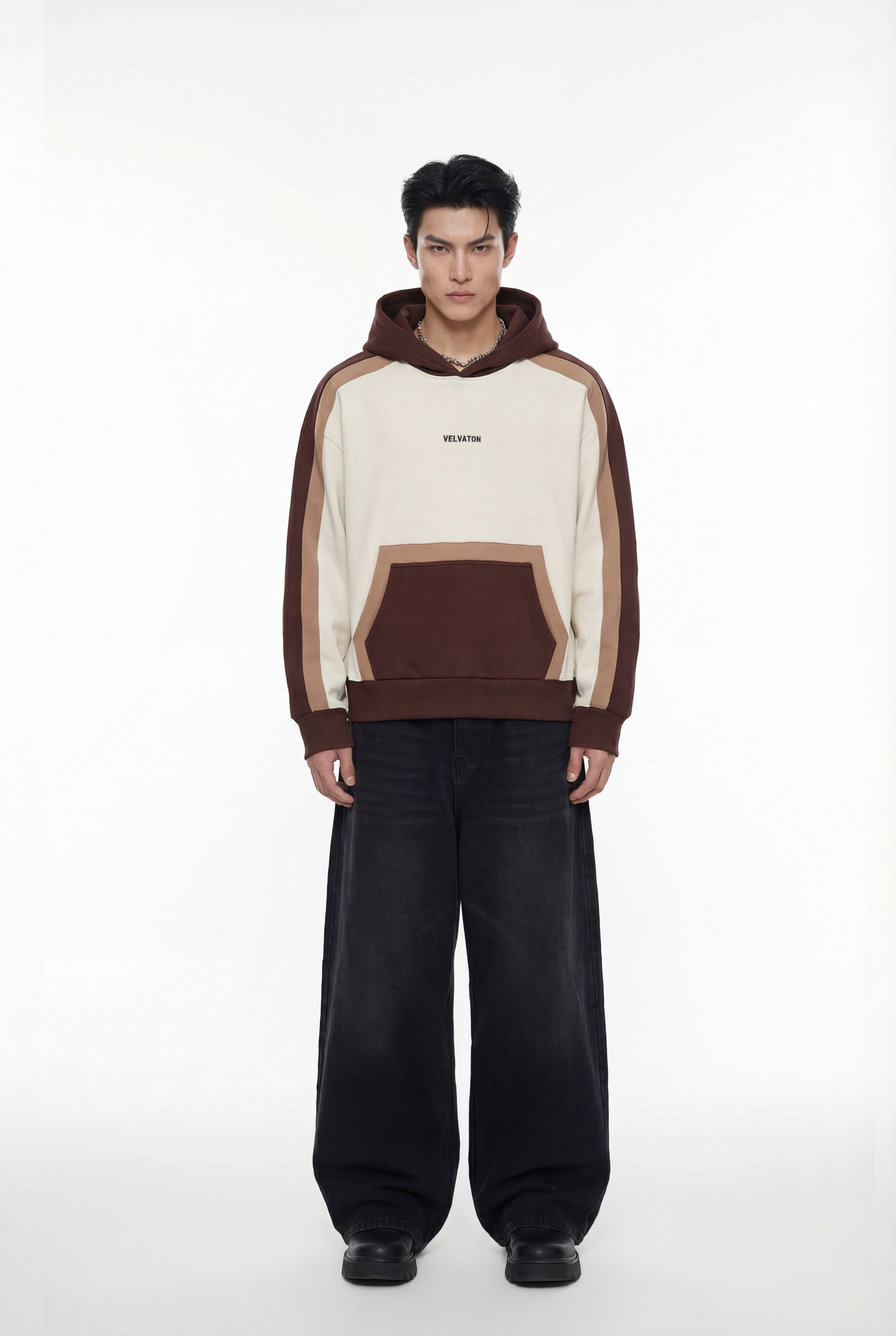 Embrace a perfect fusion of warmth, comfort, and sophisticated color blocking design with the Velvaton Premium Colorblock Hoodie. Crafted from a blend of high-quality fabrics, this colorblock hoodie mens style offers a soft feel and exceptional durability. The rich brown, beige, and white hues are seamlessly combined, making it a versatile piece for your wardrobe that pairs easily with a variety of looks.